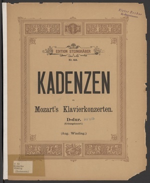 Kadenzen zu Mozart's Klavierkonzerten : D dur ; (Krönungskonzert) / von Aug. Winding