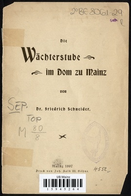 Die Wächterstube im Dom zu Mainz / Friedrich Schneider ; mit einer Skizze von Karl Goebel