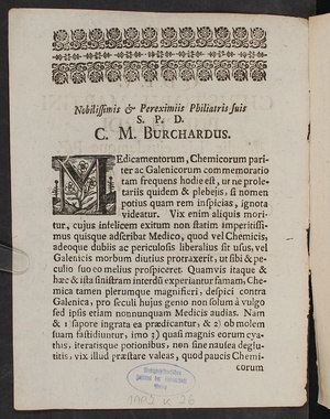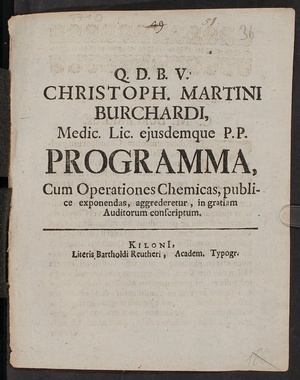 Christoph. Martini Burchardi, Medic. Lic. ejusdemque P. P. Programma, Cum Operationes Chemicas, publice exponendas, aggrederetur, in gratiam Auditorum conscriptum