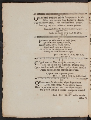 Flores Gratvlatorii Qvibvs tiaram in arte Asclepiadea doctoralem viro nobilissimo et clarissimo Jo. Henrico Gesnero, Tigvrino, Die XVI. Maii ANN. M DCCII. a viro excellentiss. atq. experientiss. D. Nicolao Eglingero, Phil. AC Med. Doct. Medicinæ Theor. Profess. Basiliensivm Archiatro Longe Dignissimo Jvre Meritoqve Collatam Conspergere Et Exornare Dignati Svnt Favtores Et Amici.