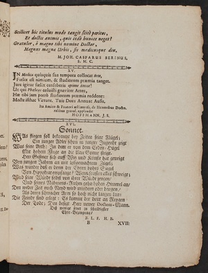 Falsch gebunden: richtige Reihenfolge laut Kustoden: 1) Titelblatt, 2) II. Doctrinae, 3) Fasne, 4) Durch, 5) Scilicet, 6) XXI. Pernocuam (siehe auch Nummerierung der Gedichte)
