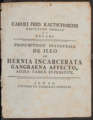 Caroli Frid. Kaltschmiedii Facvltatis Medicae H. T. Decani Propempticon Inavgvrale De Ileo In Hernia Incarcerata Gangraena Affecto, Aegra Tamen Svperstite
