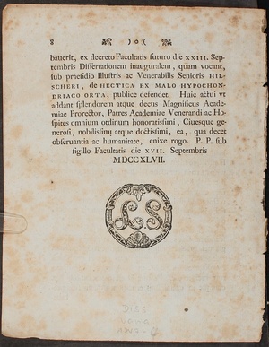 Einladungsschrift zur Med. Promotion von Johann Friedrich Braunius