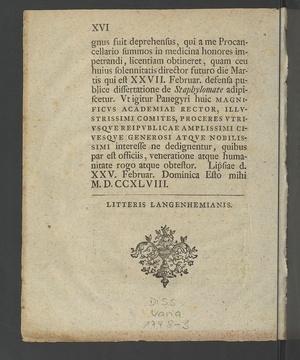 Einladung zur Promotion von Johann Michael Barth am 27. Febr. 1748, Leipzig, vom 25. Febr. 1748