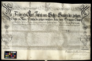 Eb. Friedrich Karl Joseph von Erthal gibt nach dem Tod des Hofkammersekretärs Friedrich Anton Nikolaus von Erstenberger das Mannlehen zu K. dem Franz Ignaz Leopold Joseph von E. und seinen Brüdern Wilhelm Joseph Ludwig und Georg Albert, den nachgelassenen Söhnen des Hofkammerrats und Kriegszahlmeisters Peter von E. und dem Hofgerichtsrat Asmuth als Bevollmächtigtem der nachgelassenen Söhne Franz Adolf Nikolaus Maria und Simon Joseph des verstorbenen Friedrich Anton Nikolaus von E.