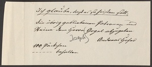 1 Bl., 1 S. (eigenhändig, mit Unterschrift)