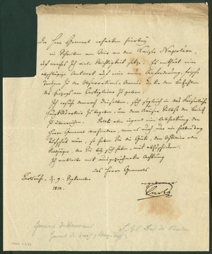 Ms 85-6 - Brief von Karl von Baden an unbekannt
