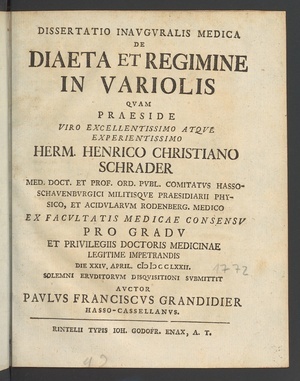 Dissertatio Inavgvralis Medica de Vera Catalepseos Notione Ac Rationali Cvratione / Qvam ... Svb Praesidio Dn Ioan. Gvil. Bavmer, Medic. Et Philosoph. Doctoris, ... Sodalis, Pro Gradv Doctoris, ... D. XVIII. April. MDCCLXXVI. Svbmittet Avctor Et Respondens Georgivs Fridericvs Schraff, Dillenbvrgo Nassovicvs.
