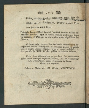 Einladung zur Promotion von Georg Friedrich Reuling, 20. Okt. 1778