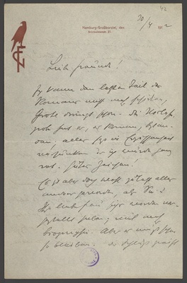 Ms 12-42 - Brief von Gustav Falke an Erich Scheurmann