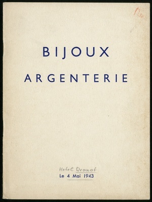 Bijoux : boucles d'oreilles, bagues, bracelets, broches, colliers, autoirs, montres- bracelets, montres etc. : objets de vitrine : étui, boîtes, chatelaines, montres : dont la vente aux enchères publiques aura lieu Hôtel Drouot, Salle No 7, les jeudi 18 et vendredi 19 mars 1943 / commissaire-priseur: Étienne Ader, assisté de: H.-D. Fromanger