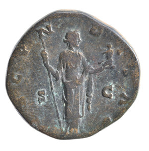 Marc Aurel und seine Gattin Faustina minor feierten jede Geburt ihrer Kinder mit einer neuen Münzprägung. Viele Nachkommen sicherten die Chance auf einen Thronfolger. Das Bildprogramm zeigt die Kaiserin oft als personifizierte Fruchtbarkeit. Nicht alle Münzen lassen sich bestimmten Geburten zuweisen. Sesterz mit Faustina minor und vier Kindern. Umschrift Rückseite: FECVND (itas) AVGVSTAE S(enatus) C(onsulto) „Die Fruchtbarkeit der Augusta – auf Senatsbeschluss geprägt.“ As zur Zwillingsgeburt von Commodus und Aurelius Fulvus Antoninus. Umschrift Rückseite: SAECVLI FELICIT(as) S(enatus) C(onsulto) „Das Glück des Zeitalters – auf Senatsbeschluss geprägt.“ Sesterz mit Faustina zur Geburt des Annius Verus? Umschrift Rückseite: FECVNDITAS S(enatus) C(onsulto) „Fruchtbarkeit – auf Senatsbeschluss geprägt.“