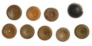 Das noch heute so bekannte wie beliebte Mühlespiel gab es bereits in römischer Zeit in den Varianten rund und quadratisch. Die Mühle wurde ganz praktisch in eine Ziegelplatte geritzt und fungierte somit Spielbrett. Ein Teil der Spielsteine, die man tausendfach in Trier entdeckte, wurde vermutlich für dieses Mühlespiel verwendet.