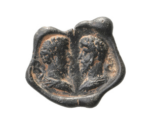 Kaiserporträts finden sich nicht nur auf Münzen, sondern auch auf Plomben. Die Versiegelung schützte politische Schriftstücke oder Waren für den kaiserlichen Hof vor unerlaubter Öffnung. Die Plombe zeigt die gegenständigen Bildnisse von Marc Aurel und Lucius Verus. In den meisten Fällen sind sie aus Blei, aber auch aus Ton oder Wachs gefertigt worden.