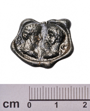 Kaiserporträts finden sich nicht nur auf Münzen, sondern auch auf Plomben. Die Versiegelung schützte politische Schriftstücke oder Waren für den kaiserlichen Hof vor unerlaubter Öffnung. Die Plombe zeigt die gegenständigen Bildnisse von Marc Aurel und Lucius Verus. In den meisten Fällen sind sie aus Blei, aber auch aus Ton oder Wachs gefertigt worden.