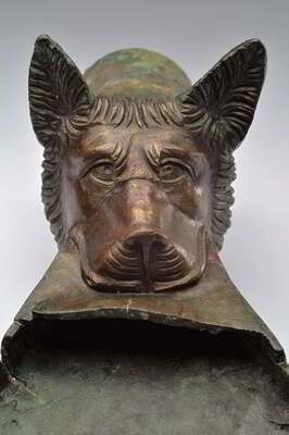 Die römischen Aquädukte führten enorme Wassermassen in Thermenanlagen, private Bäder, in wenige Privathaushalte, aber auch zu den zahlreichen öffentlichen Laufbrunnen. An ihnen konnte sich jeder mit Wasser versorgen, für den ein eigener Zugang zu teuer war. Über solche Speier, oft als Löwen- oder wie hier Wolfskopf gestaltet, lief das Wasser in die Brunnen.