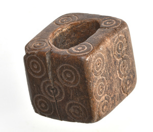 Römische Würfel wurden als Massenprodukt aus ganz unterschiedlichen Materialien gefertigt, am häufigsten jedoch aus Bein. Die Augen sind in typischer Art von konzentrischen Kreisen gebildet. An den zentralen Einstichen erkennt man den Einsatz des Handbohrers. Die Augenpaare 1 und 6, 2 und 5 sowie 3 und 4 liegen jeweils gegenüber, was bis heute üblich ist. Einer der Würfel ist innen hohl, ein Indiz seiner Fertigung aus einem Röhrenknochen, dessen Mark vergangen ist. Würfelspiele waren bei allen gesellschaftlichen Schichten beliebt.