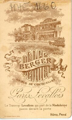 Das Brustbild im Vignettenstil zeigt eine junge Frau, die direkt in die Kamera schaut. Sie trägt ein dunkles Oberteil mit kleinem Stehkragen an welchem eine ovale Brosche befestigt ist. Die leichten Puffärmel sind in Querfalten gelegt , außerdem ziert das Oberteil ein längsverlaufender Spitzenbesatz. Das Haar ist über Stirn und Seiten hochtoupiert und auf dem Oberkopf zu einem Chignon frisiert.