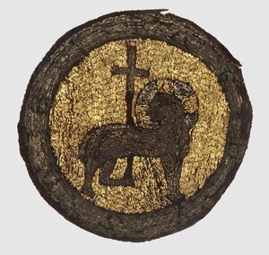 Gefunden im Rahmen der Grabungen der Bayerischen Akademie der Wissenschaften im Dom zu Speyer im August 1900 im Grab des "Bischofs III". Neben den Kaiser- und Königsgräbern wurden auch mehrere Bischofsgräber geöffnet. Die Identifikation der Verstorbenen in der sog. "Bischofsreihe" ist jedoch nicht eindeutig möglich; die Gräber wurden daher in der Reihenfolge ihrer Entdeckung durchnummeriert. Der Verstorbene war durch eine Mitra, einen Fingerring an der rechten Hand und einen Stab mit eiserner Krümme eindeutig als Bischof zu identifizieren. Seine Gewandung bestand darüber hinaus aus Kasel, Tunika, Stola und Manipel. (siehe auch D_0342) Der Manipel besteht aus einem brettchengewebten Band mit einem figürlichen Muster, das sich in der Mitte spiegelbildlich umkehrt: Dargestellt ist der thronende Christus, die linke Hand im Segensgestus erhoben, in der Rechten ein Buch haltend. Ein Schriftband umschließt die Motive: FONS EGO SVM VIT(a)E SITIENTES HVC PROPERATE. In den äußeren Zwickeln sind die vier Evangelistensymbole dargestellt.