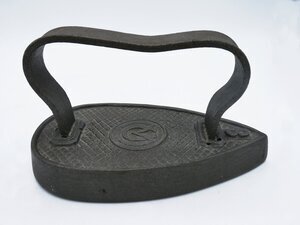 Das vorliegende Bügeleisen ist aus Gusseisen und besitzt einen angeschweißten Bügel. Die Oberfläche ist mit schräg laufenden Quadraten verziert. Zudem ist in der Mitte eine Gussmarke mit den kunstvoll verschlungenen Buchstaben M und U, wahrscheinlich den Initialen des Herstellers. An der Spitze befindet sich die Ziffer 8. Das Bügeleisen gehörte ursprünglich wohl zu einem Satz von Bügeleisen. Bügeleisen werden seit dem 17. Jahrhundert zum Glätten der Wäsche verwendet. Die ersten Bügeleisen bestanden aus einer Metallplatte und einem bügelartigen Griff. Daher auch der Name. Flacheisen wurden in Privathaushalten auf der Herdplatte, in gewerblichen Betrieben auch auf speziellen Bügeleisenöfen erhitzt und konnte dann so lange es heiß war zum Glätten der vorher mit Wasser eingesprengten Wäsche verwendet werden. Wurde das Eisen auf oder in einem Kohleofen erhitzt, musste es zuerst von Kohleresten gereinigt werden. War das Eisen zu sehr abgekühlt, musste es gegen ein gerade aufgeheiztes Exemplar ausgetauscht werden. D.h. zum kontinuierlichen Bügeln waren mehrere Bügeleisen vonnöten.