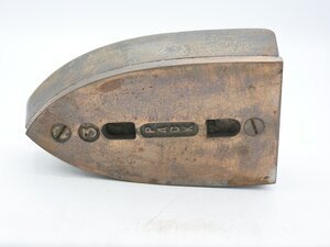 Das Bügeleisen besitzt einen rot lackierten Holzgriff mit einer Nase, der auf das Eisen geklemmt werden konnte . Mit dem auf einer Feder sitzenden Knopf (auf der Bodenplatte des Griffs) kann der Griff vom Unterteil gelöst werden. Auf der Unterseite der Bodenplatte des Griffs finden sich folgende Inschriften: P A C K 105 und unten an der Feder 406 Oben auf den Heizkörpern steht in der Mitte (sekrecht) P A O K unf an deren Spitze die Nummer - relativ zum Heizkörpersatz, die zu einem Griff gehören. Satzeisen gehen auf ein amerikanisches Patent aus dem Jahre 1871 zurück. Sie besitzen eine mit Asbest isolierte Bügeleisendecke und einem ausklinkbaren Holzgriff den man auf auf eines der meist 4 Eisen klemmen konnte. Im Laufe der Zeit entwickelten die Hersteller viele verschiedene Klemmmechanismen. Vor dem Bügeln wurde das Eisen auf einem Herd erhitzt und anschließend der Holzgriff aufgesetzt, um die Wäsche zu glätten. Beim Bügeln werden mehrere Eisen gleichzeitig auf einem Ofen aufgeheizt. Ein Eisen wird an den Griff geklemmt und mit diesem wird gebügelt. Wird das Eisen im Laufe der Zeit zu kalt, so wird der Griff abgeklemmt und an ein anderes, heißes angeklemmt. Sofort kann dann mit diesem gebügelt werden und das erkaltete Unterteil wird auf den Herd gestellt. Satzeisen setzten sich schnell durch, da sie im Vergleich zu Bolzeneisen viel einfacher und sicherer zu bedienen waren. Auch nach der Elektrifizierung waren sie auch aus Sparsamkeitsgründen noch lange in Gebrauch.