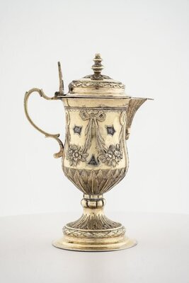Messkännchen von Caspar Xaver Stippeldey, Augsburg, 1789. In den Messkännchen wurden Wasser und Wein für die Feier des Abendmahls bereitgestellt. Am Henkel verweisen die Buchstaben A (für Aqua) und V (für Vinum) auf die Funktion der Kännchen. Die Gefäße und das dazugehörige Tablett sind reich mit klassizistischen Ornamenten wie Blumengehängen und Friesen aus Lanzett- und Lorbeerblättern verziert. Meistermarke CXS und Augsburger Beschau mit E Caspar Xaver Stippeldey, Silberarbeiter, Sohn des Johann Carl Stippeldey, kath., getauft 1735, Meister 1765, (laut Verzeichnis von 1766). Verheiratet 1766, Vorgeher 17831786, Geschaumeister 1792-1796, 1798, 1799. Gestorben 1808.