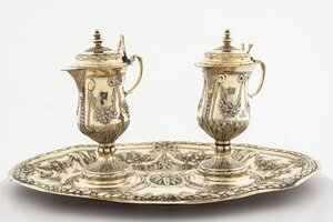 Messkännchen von Caspar Xaver Stippeldey, Augsburg, 1789. In den Messkännchen wurden Wasser und Wein für die Feier des Abendmahls bereitgestellt. Am Henkel verweisen die Buchstaben A (für Aqua) und V (für Vinum) auf die Funktion der Kännchen. Die Gefäße und das dazugehörige Tablett sind reich mit klassizistischen Ornamenten wie Blumengehängen und Friesen aus Lanzett- und Lorbeerblättern verziert. Meistermarke CXS und Augsburger Beschau mit E Caspar Xaver Stippeldey, Silberarbeiter, Sohn des Johann Carl Stippeldey, kath., getauft 1735, Meister 1765, (laut Verzeichnis von 1766). Verheiratet 1766, Vorgeher 17831786, Geschaumeister 1792-1796, 1798, 1799. Gestorben 1808.