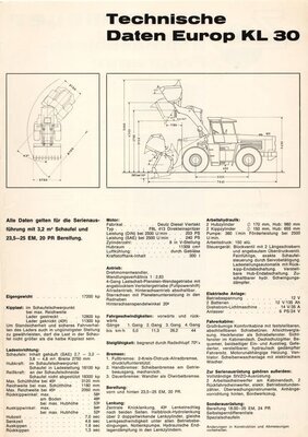 Werbebroschüre der Firma Zettelmeyer für den Radlader Europ KL 30