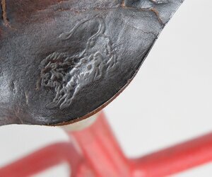 Das Dreirad wurde in den 1920/1930er Jahren für Kinder konstruiert. Ursprünglich hatte das Dreirad eine schwarze Farbe, wurde aber im Laufe der Jahre mindestens einmal mit roter Farbe neu lackiert. Vermutlich sind damit auch Abziehbilder verschwunden, die auf den Hersteller schließen lassen. Einzig der Ledersattel, in den ein Löwe eingeprägt ist, könnte eventuell einen Hinweis geben, der uns aber leider verschlossen bleibt. Die drei Speichen Räder haben einen Durchmesser von 25 cm und mit einer Vollgummibereifung ausgestattet. Der Anrieb erfolgt mittels Pedalen und Fahrradkette auf den hinteren Zahnkranz, der auf die Hinterachse aufgeschweißt ist. Durch diese starre Verbindung drehen sich die Pedalen zwangsläufig immer mit. Gebremst werden konnte nur mit den Füßen, da weder Vorder- noch Hinterräder eine Bremsvorrichtung hatten.