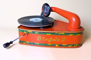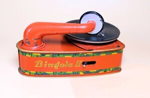 Das Kindergrammophon Bingola II ist aus Blech gefertigt und verfügt über ein mechanisches Federwerk zum Antrieb des Plattentellers. Aufgezogen wird die Feder mit einer auf schraubbaren Kurbel. Der Durchmesser des Plattentellers beträgt 15 cm und kann mit 2 unterschiedlichen Geschwindigkeiten betrieben werden. Die gesamte Form des Plattenspielers erinnert an ein abgerundetes Dreieck und wurde vom Hersteller in einem roten Grundton lackiert. Beidseitig ist der Name "Bingola ii" in grünem Buchstaben mit goldenem Rand angebracht. Das Abtasten der Spurrillen erfolgt mittels Stahlnadel. Die erzeugte Schwingung wird in der Schalldose in einen Ton umgewandelt und durch dem hohlen Tonarm an den Resonanzköper (Grammophongehäuse) weitergegeben. Hergestellt wurde das Musikgerät Mitte der 1920er Jahren, von der Firma Bing in Nürnberg.