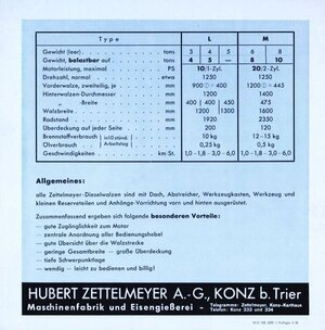 Faltblatt der Firma Zettelmeyer für Diesel-Walzen