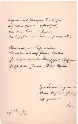 Zu sehen ist ein Kind, welches auf einem Fass sitzt. Die rechte Hand trägt einen gefüllten Bierkrug, die Linke hält zwei Pflanzen mit Wurzeln. Das Bild ist auf ein Stück Pappe geklebt. Unter dem Foto erscheint der Name des Künstlers. Auf der Rückseite steht eine persönliche Widmung sowie das Datum 27.10.97