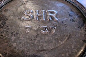 Ein Benzinfass, Hergestellt 1937, von der französischen Firma R.Behin aus Gennevilliers/Seine. Das Fass hat eine bauchige Form. Oben und unten abgeplattet, für einen sicheren Stand. In der Mitte umschließen zwei Verstärkungsringe den Bauch, zwischen denen der Füllstutzen liegt. Dieser kann nur mit einem Spezialschlüssel geöffnet werden. Auf der Oberseite ist das Herstellungsdatum erkennbar. (Juli 1937). Das Fass war beim Französischen Militär in Gebrauch.