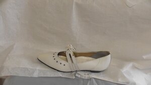 Ein Paar Schwarze Damen-Sandaletten aus Leder. Runde Form, Schuhgröße 35. Die Schuhe haben einen mit Leder bezogenen Keilabsatz (3 cm). Sie verfügen über eine Zehenöffnung und auf dem Schuhblatt und Ferse befinden Ziernähte, sowie Zierlochungen. An den Schuhen befinden sich zwei gekreuzte Lederriemen mit Schnallenverschluss seitlich und über dem Fuß. Diese sind am Schuhblatt und am hinteren Teil des Schuhs befestigt. Zudem sind die Schuhe gelenkoffen. Hergestellt in Holland.