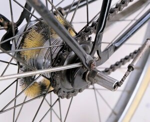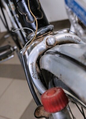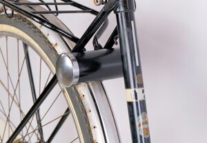 Das Damenrad aus der Fabrikation der Firma Bismarck hat die Produktionsnummer 1.635.190, woraus sich das Herstellungsjahr 1956 ableiten lässt. Rahmen und Gabel sind schwarz lackiert, die Schutzbleche dagegen, silbern mit zwei parallel laufenden dünnen, schwarzen Streifen. Auf dem Rahmen sind Abziehbilder mit dem Namenszug „Bismarck“ und dem Hinweis „ Das Siegerrad der Deutschlandfahrt“ angebracht. Ein Firmenlogo aus Metall, gestanzt bzw. gegossen, befinden sich am Steuerkopf, dem Vorderen und dem hinteren Schutzblech. Das Rad ist mit einer 3 Gang Nabenschaltung von Torpedo, Modell 55 ausgestattet, die über einen Kipphebel vom Lenkrad aus geschaltet wird. Zum Bremsen steht ein Rücktritt und eine Felgenbremse für das Vorderrad zur Verfügung. Unterhalb des Sattels hat der Hersteller einen runden Behälter, zur Aufnahme von Flick- und Werkzeug, eingebaut. Die Klingel ist noch Original und trägt ebenfalls das Firmenlogo. Das Rad wurde von uns restauriert und befindet sich in der neu eingerichteten Fahrradwerkstatt.