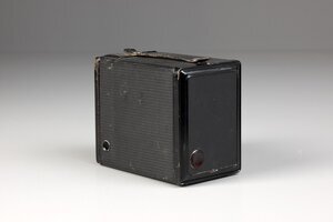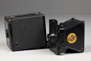 Das letzte Modell der Agfa Box 45 vor dem 2. Weltkrieg aus dem Jahr 1938. Der Auslöser befindet sich an der rechten Seite (unten vorn). Die Kennzeichen "·" und "-" geben die Einstellzeiten für die Belichtung (kurze Zeit oder beliebig lang) an. Zwei verschieden große Lochblenden und ein Gelbfilter können genutzt werden. Die Kamera besitzt eine Dekorfront. Um dem Objektiv der Kamera befinden sich Doppelringe als Verzierung und unterhalb der Verzierung ist das Agfa-Logo (Rhombus mit Agfa-Schriftzug) auf der schwarzen Metallplatte aufgetragen. Auf der Deckplatte ist ein schwarzer lederner Trageriemen mit der Prägung "AGFA-BOX" befestigt. Das Metallgehäuse ist schwarz lackiert und schwarz beledert. Objektiv: Meniskus 11/100 und Gelbfilter, Einfachverschluss. Zitat aus Museum Digital Industriemuseum Wolfen.