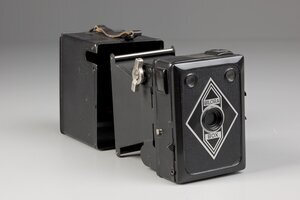 Die Bilora Box wurde von 1935, mit Unterbrechung des Krieges, bis Ende der 1950ziger Jahre in Radevormwald produziert. 1956 lief die 1.000.000ste 6X9 Box vom Band. Bilora produzierte auch für Agfa, Zeiss-Ikon und Yashica Kameras. Die Bilora Box ist im vorderen Teil zu öffnen, die Filmführung ist mit der Front fest verbunden. Sie hat, wie die Agfa Box zwei Sucher und eine einfache Meniscuslinse als Objektiv. Der Stahlkorpus ist schwarzem Kunstleder überzogen. Ihr Zustand ist sehr gut. Sie ist wahrscheinlich in den 50zigern gebaut worden.
