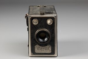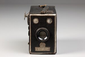 Die Balda R-Box der Firma Balda / Dresden ist ein Modell aus den 1930ziger Jahren. Sie war eine bei der Jugend sehr beliebte Kamera einfachster Bauart und war sehr leicht zu bedienen. Der Filmwechsel erfolgte immer beim Fachhandel. Die Box wurde abgegeben, der Film (6x9,120.Rollfilm) vom Händler gegen einen Unbelichteten ausgetauscht, die Fotos beim Händler entwickelt und abgezogen. Mit der Einführung der Boxkamera begann die Massen-Fotografie. Die Kamera hat starke Gebrauchsspuren, der Chromrahmen auf der Front ist rostig.