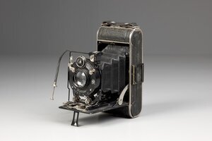 Eine Klappkamera von Voigtländer. Eine Bessa von etwa 1935. Das Objektiv, ein Anastigmat von Voigtländer ist innen verschmutz, eventuell durch einen Pilz. Die Klappmechanik ist etwas sperrig, sie müsst einmal überholt werden. Sie ist mit echtem Leder überzogen. Die Kamera arbeitet mit 120ziger 6x9 Rollfilmen