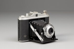 Die Agfa Isolette I ist eine Klappkamera mit einem optischen Sucher, der in das Gehäuse integriert ist. Sie wurde von 1946 bis 1949 produziert. Ihr Objektiv ist ein Agfa Agnar 1:4.5 / 85. Mit ihr werden 120ziger Rollfilme 6x9 belichtet. Der Korpus ist aus Aluguss mit Kunstbelederung. Sie hat keine Schutzhülle. Die Kamera ist in guten Zustand, nur die Filnmransportkurbel ist defekt.