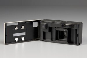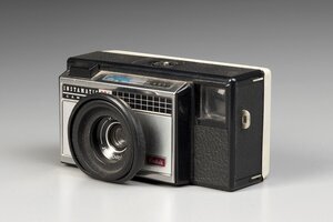 Eine Kamera von Kodak mit Einfachstbedienung. sie belichtete 126iger Filmkasetten, die Negative von 28x28 mm ergaben. Sie hat ein Objektiv Reomar 1:5.6/38 mm, einen Steckplatz für Blitzwürfel und einen Einfachverschluss. von 1965 bis 1968 wurde sie bebaut. Ihr Korpus besteht aus Kunststoff. Sie ist etwas schmutzig, das dicke schwarze Lederetui ist abgewetzt. Gefördert im Rahmen von Neustart Kultur 2021