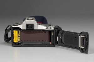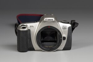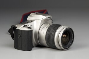 Die EOS 300 ist eine lezten analogen Spiegelreflexkameras die Canon baute. Sie wurde von 1999 bis 2002 gebaut und war ein guter Erfolg. Mit ihr wurden Kleinbildfilme 24x36 belichtet. Sie bot alles was zur leichten Fotografie gebraucht wurde, war preiswert und wog nur noch 300 g. Sie hat ein komplettes Kunststoffgehäuse, das nicht allzu werig wirkt. Au der Gehäuseoberseite sin links mit einem Stellrad verschiedene Programme zu wählen, rechts neben dem Prisma finden sich 3 Bedienungsknöpfe und ein Display. Auf dem Prisma lässt sich, auch nur elektronisch ein Blitz ausklappen. Die Kamera hat einen Autofokus und eine Blenden/Zeitautomatik. Ihre Objektive haben ein EF-Bajonett, die alten FD Objektive passsen noch an die Kamera, erfüllen aber nicht jede Funktion. Der Film wird automatisch transportiert.