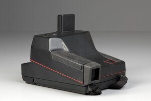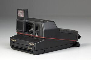 Die analoge Polaroid Impulse Portrait ist eine nicht klappbare Sofortbildkamera, die ihre Entwicklungseinheit im Boden hat. Ihr Körper, ein abgeflachter niedriger Quarder hat einen Aufsatz, der etwas zurückgesetzt, das Objektiv, den Sucher und den Blitz in sich hat. Die Kamera arbeitet nur wenn der Blitz ausgefahren ist, den Strom dafür liefert die Filmkassette 600. Diese wird in den Schlitz am Boden geschoben, die Aufnahme belichtet, 1 Minute gewartet und das fertige Bild herausgezogen. Die Kamera hat ein schwarzes Kunststoffgehäuse mit einer umlaufenden roten Linie. Sie kam 1990 auf den Markt, ihr Zustand ist gut.