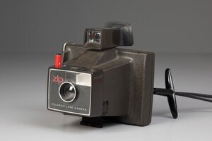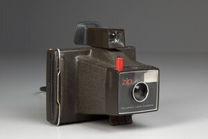 Die ZIP von Polaroid land camera ist für den Film 87, nur schwarz/weiss konzipiert. Sie hat ein dunkebraunes Kunststoffgehäuse, in die Rückwand wird der Film gelegt, belichtet und entwickelt. Aus der Rückwand ragt ein sich verjüngender Quarder, der das Objektiv, den Auslöser und einen Biltzanschlus trägt. Das Objektiv hat nur eine geringe Lichtstärke, der Film 87 hat 3000 ISO, so ergibt große Schärfentiefe. Der Kamerakörper hat einen breiten Steg auf dem ein grosser Sucher sitzt. Das Gehäuse hat eine feingenarbte Oberfläche. Die Kamera gebaut zwischen 1971-75, ist etwas angestaubt, aber in gutem Zustand.