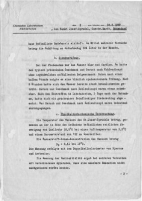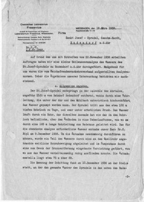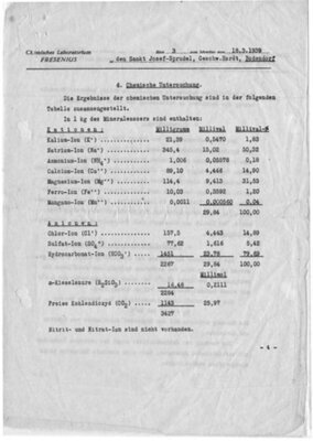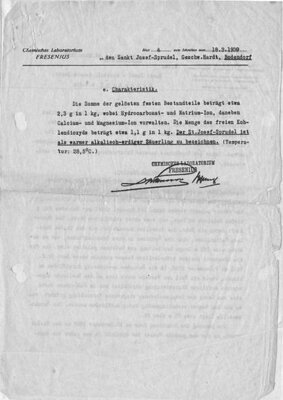 Heilwasseranalyse St. Josef-Sprudel aus dem Jahr 1939