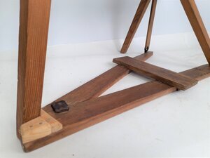 Dieses Spinnrad hat im Gegensatz zu den üblichen Rädern keinerlei Drechslerarbeiten, die sonst auch die einfachsten Exemplare noch in einem gewissen Maße verzieren. Alle Bestandteile, auch die Radspeichen und die Beine sind flach aus Fichtenbrettern ausgesägt. Lediglich der Wirtel und der Kopf des Flügels sind auf einer Drechselbank oder vielleicht auch auf einer Drehbank hergestellt worden. Auch die Verstellschraube, mit der die Fadenspannung des Antriebsriemens eingestellt wird, ist eine schlichte Metallkonstruktion. Ob dies auf bewussten Gestaltungswillen oder auf die Ermangelung von Drechslerwerkzeug zurückzuführen ist, muss offen bleiben. Beides würde aber auf eine Datierung nach 1945 bis 1970 sprechen. Die Verbindung zwischen dem linken Bein und dem Fußtritt ist offenbar schon einmal gebrochen und wurde mit kleinen Holzklötzen und modernen Schrauben repariert. Von der Bauart ist es als eine Geiß mit zweifädigem Antrieb über Spule und mit der Achse des Flügels verbundenem Wirtel zu bezeichnen.