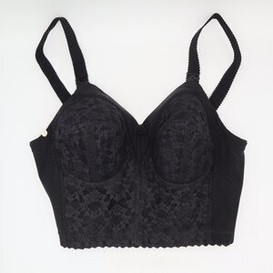 Büstenhalter der Marke Susa, gefertigt aus schwarzem Stoff und schwarzer Spitze. Es handelt sich um das Modell Dynamik 8376, das gesamte Rückenteil ist elastisch. Auf einem Schild ist der Preis 32,50 vermerkt.