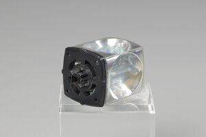 1970 brachte Salvania den X Blitzwürfel auf den Markt für Kleinbildfotografie, für den keine Batterie gebraucht wurde. Das Abbrennen des Magnesiumdrahtes in Sauerstoff wurde mit einen Schlagbolzen in der Kamera ausgelöst. Alles Weitere ist wie beim N Würfel, sie sind nur an der Unterseite zu unterscheiden. Der N Würfel ( Inventnr. TON 1194) hat Drahtkontkte, der X Würfel nicht. Hier gibt es noch einen Magicube Extender zu sehen, mit dem der Abstand zwischen Objektiv und Blitz vergrößert wurde um rote Augen in Porträts zu verhindern.