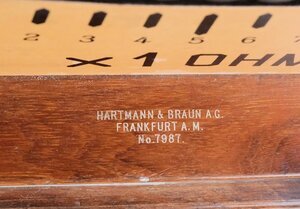 Das Gerät hat einen Holzaufbau an dem alle Bedienteile befestigt sind. Es gibt Einstellmöglichkeiten von Widerständen zwischen 1 Ohm bis zu 1099 Ohm. Die Grobeinteilung erfolgt über drei Hebel ( x 1 Ohm, x 10 Ohm und x 100 Ohm) sowie einem Schieberegler (Feineinstellung) der auf der Oberkante des Brettes angebracht ist.