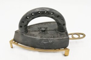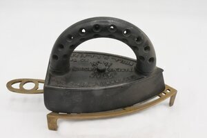 Massives Volleisen mit angeschraubtem massiven und rundem Griff. Es gehört zu den massiven Volleisen, die aus Eisen oder Stahl geschmiedet oder gegossen und bereits ab dem 18. Jh. hergestellt wurden. DIe Kante hinten unten ist abgerundet. Somit ist es auch ein Glanzbügeleisen. Der Griff ist durchlöchert, was zur Abkühlung des Griffs diente. Auf dem eigentlichen Eisen ist eine Platte montiert. In der Mitte ist eine Gussmarke mit einem sechszackigem Stern. Weiterhin die Schriftzüge ENTERPRIESE M'F'G STAR IRON PATENT GROUND NO 76 (oder 16) PHILA , U.S.A: SIZE 2 Im Gegensatz zu den meisten Amerikanischen Modellen besitzt dieses Eisen, wie in Europa üblich, nur eine Spitze. Ob die Abstellplatte aus Messing mit dem Bügeleisen zusammen ein Konvolut bildete läßt sich derzeit nicht nachweisen.